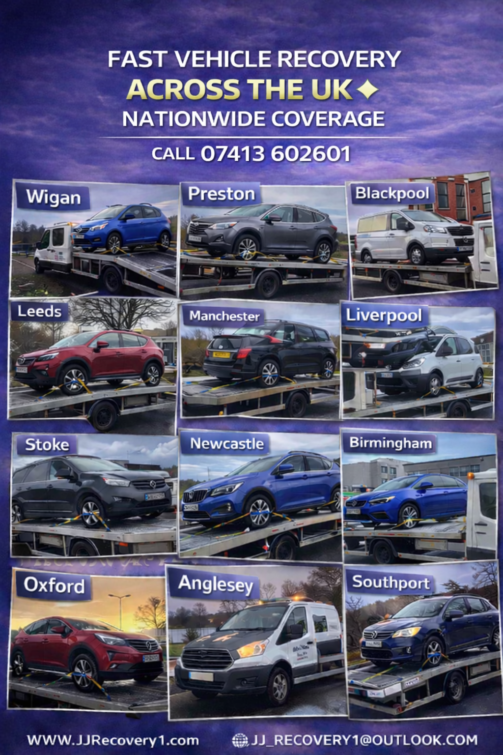 JJ Recovery1 brings peace of mind and professional vehicle recovery directly to you, ensuring a safe return home.